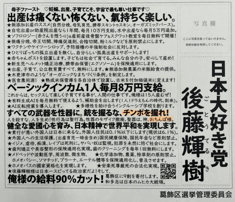 ★選挙ポスター、選挙ビラ、選挙ハガキ、選挙公報作成など一括39万円。